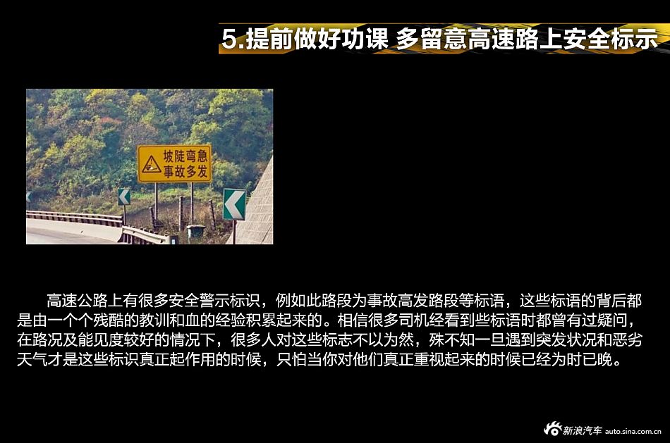 高速驾驶留意事项看似简单,提高日常用车的平安认识。提高日常用车的平安认识。若是那些变乱中的驾驶员能多领会一下经验常识这些悲剧大概就不会发生,因而新浪用车小组决定再做一期高速行车留意事项的选题。